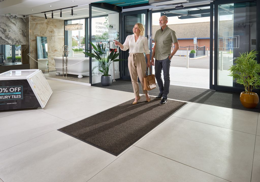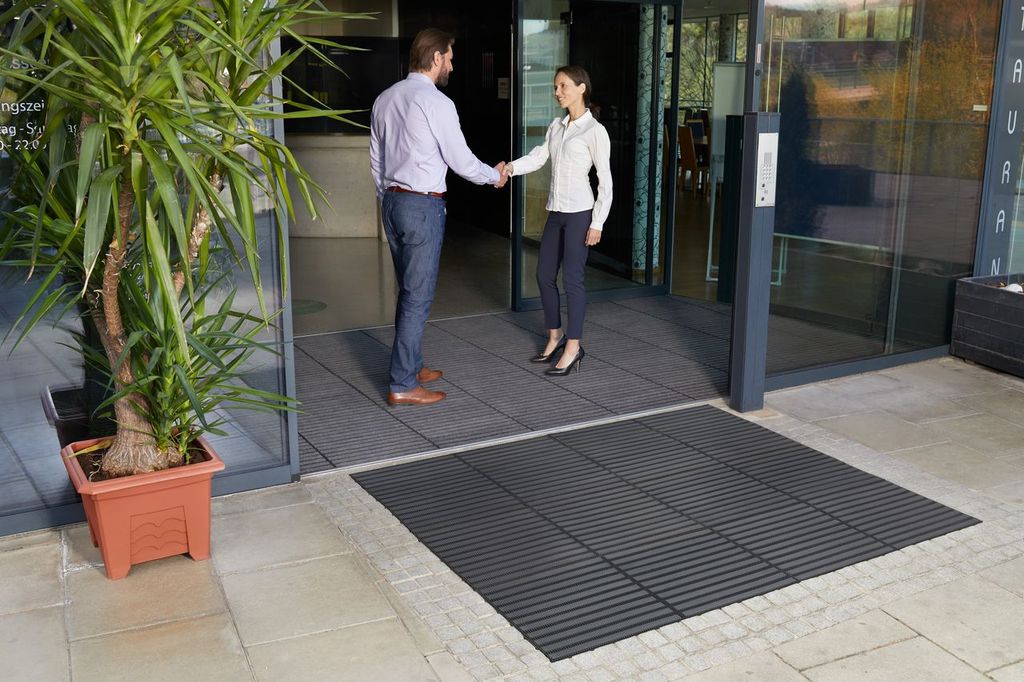 Nikt nie wyciera butów celowo podczas wchodzenia do budynków użyteczności publicznej – im więcej kroków na matach, tym więcej brudu zostaje zatrzymane.